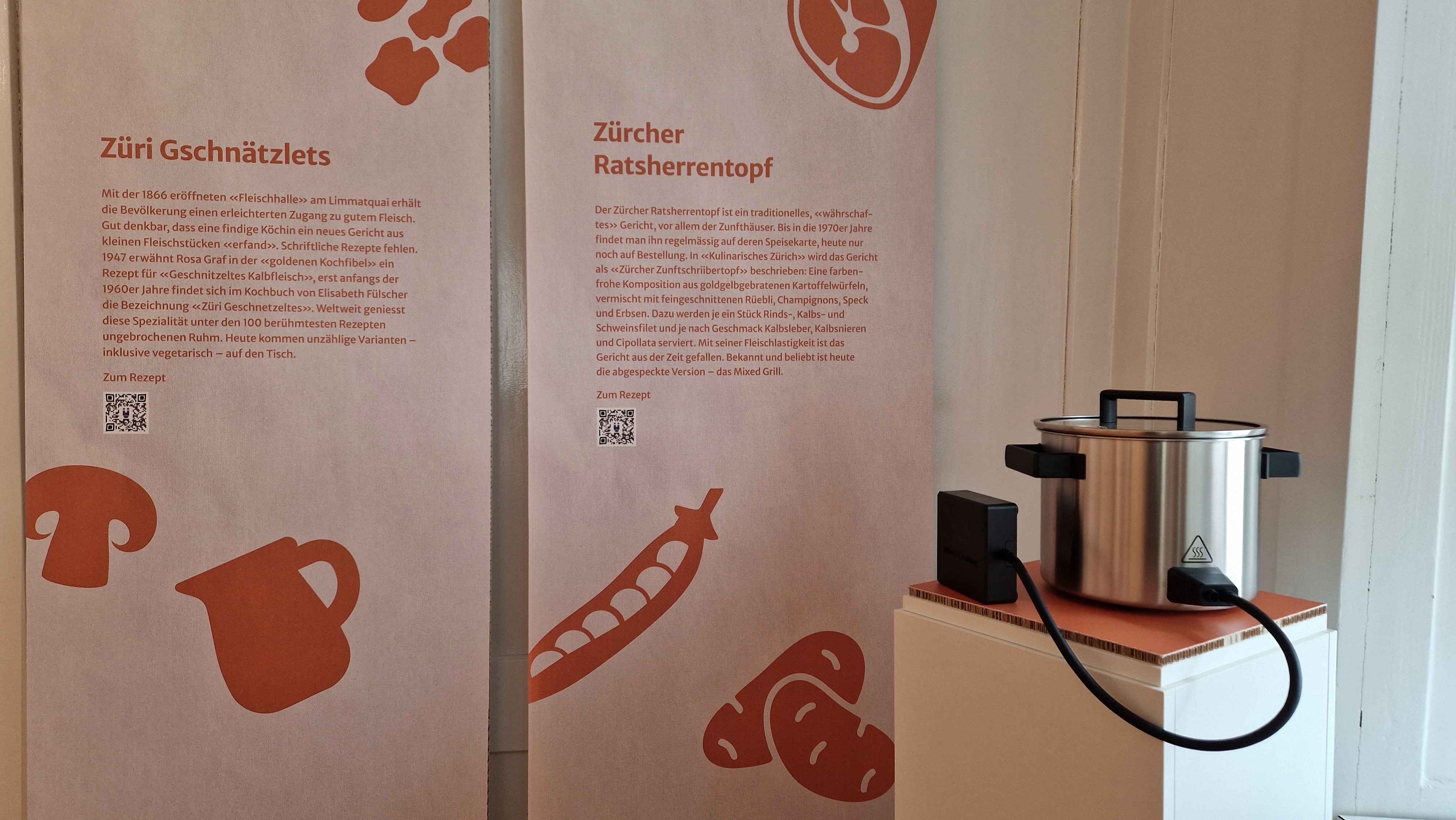 Von den historischen Wurzeln unserer Esskultur bis zu aktuellen Trends spannt die Ausstellung einen grossen Bogen. Zeitgenössische und historische Objekte spiegeln die vielen Facetten unserer Esskultur: von prähistorischen Gefässen über mittelalterliche Kupferkessel, dem kleinsten Kochbuch der Welt bis hin zum smarten Kochtopf. Klassische Schweizer Produkte, Kochbücher, Rezepte und Alltagsgegenstände machen sichtbar, wie sich Kochen, Essen und Zusammenleben verändert haben. Historische Fotografien und Postkarten, Video-Interviews und zeitgenössische Kunstwerke eröffnen weitere Perspektiven auf die Schweizer Esskultur.